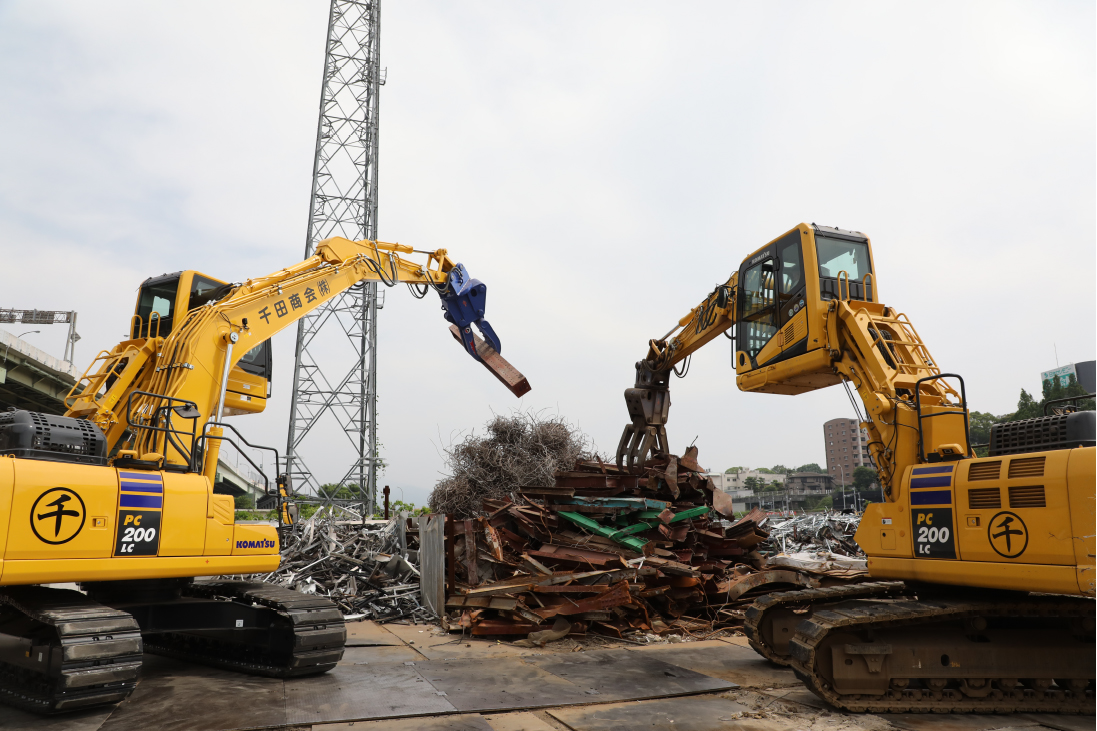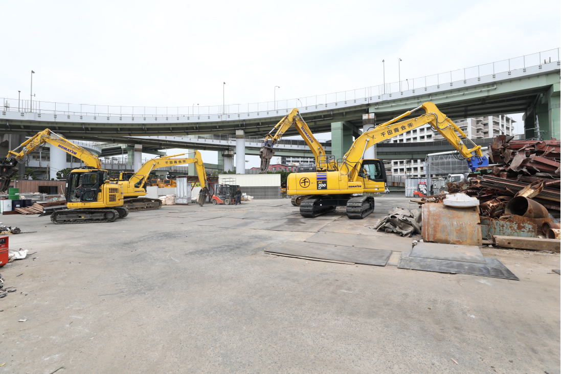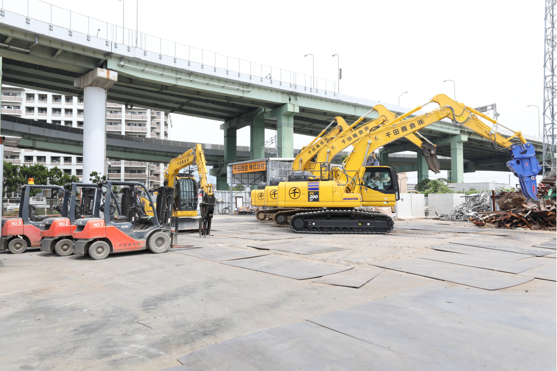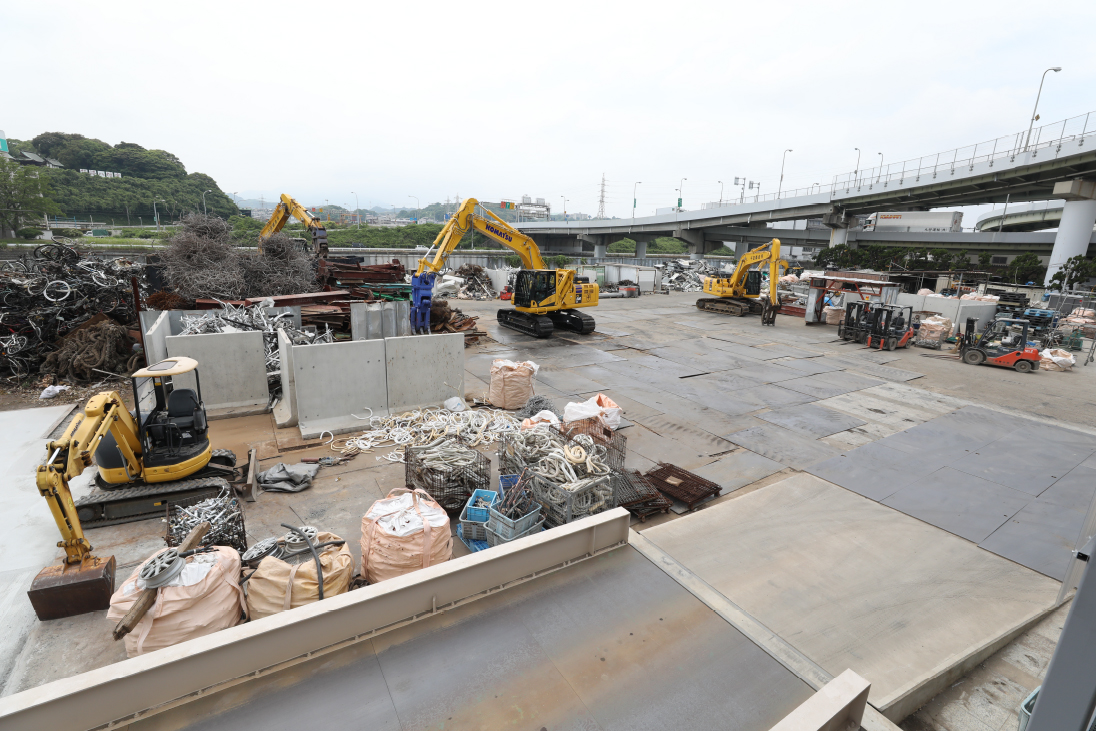 千田商会は、北九州の中心部(都市高速紫川ジャンクションの真下)にて1,000坪を超える敷地内で営業しており、毎日多くの入荷量がございます。ヤード内が手狭にならないよう、毎日、複数台の大型トラックで出荷。重機は0.7を3台・0.3を1台用意して積み込み、出荷をスムーズに行い、入荷のお客様をお待たせすることのないように快適なヤードへとリニューアルしました。