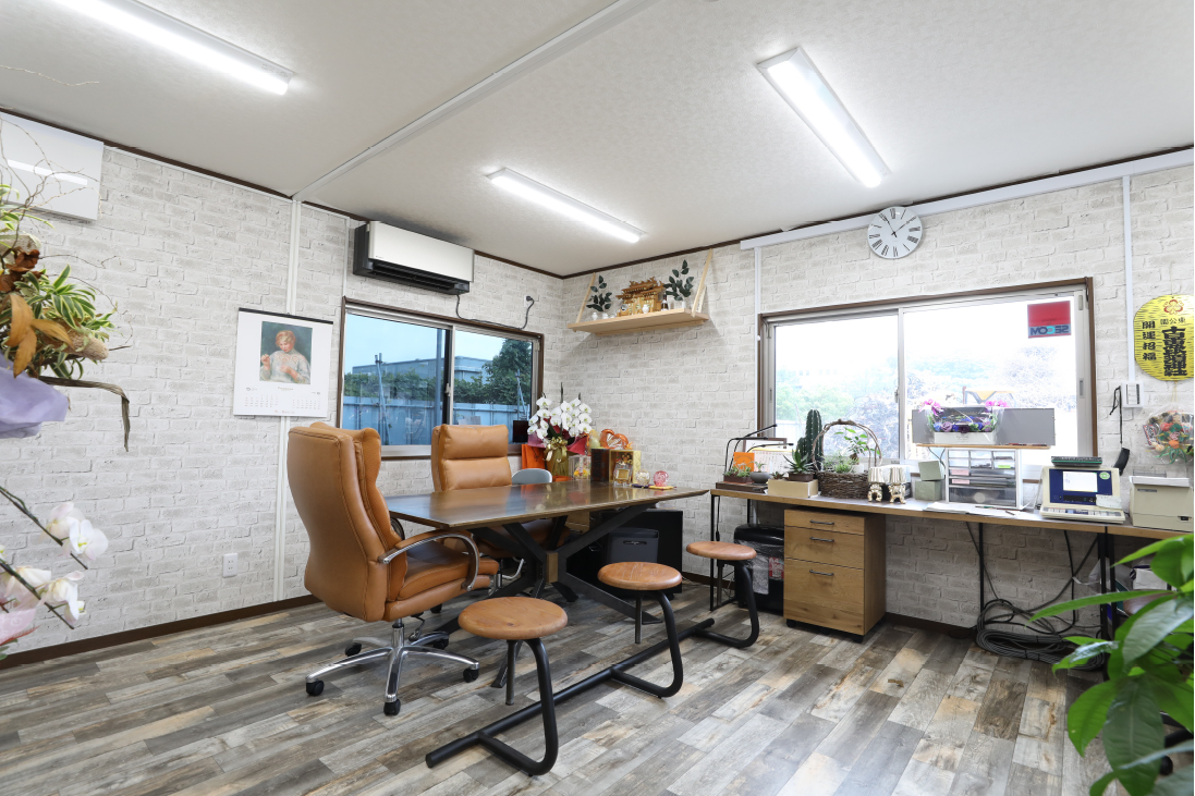 二階には商談スペースを用意して、ゆっくりと打ち合わせが出来ます。